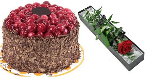 11 Kırmızı Gül ,Celbera ve Kır Çiçekleriyle Hazırlanmış Sepet Arajman. Yanında da Yaş Pasta.